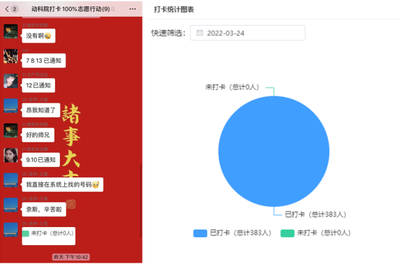 自南昌疫情发生以来,为进一步落实公司研究生每日体温打卡工作,动科院研究生第二党支部作为公司的青年防疫力量之一,本着“立足同学,服务同学”理念,成立志愿服务工作小组,主动承担起全院研究生每日体温打卡核查督促工作。