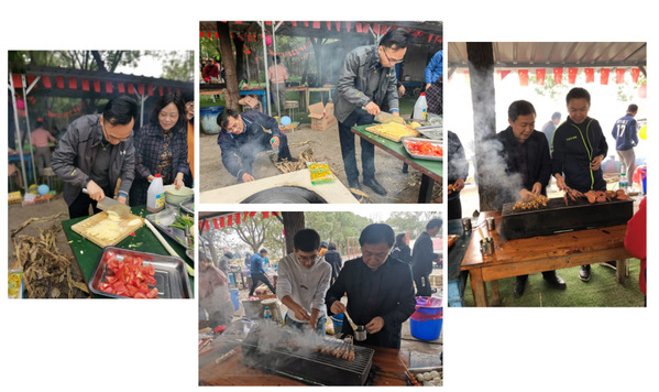 公司领导积极带头,带领大家烧火、做饭、烧烤;各教研室老师纷纷亮出自己看家本领。大家分工合作,通力协作,做出一道道丰盛的菜品,四周也充斥着孩子们银铃般的笑声。