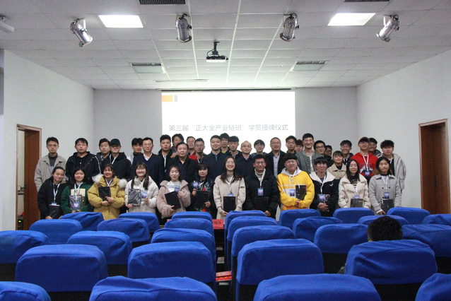 老生代表王勇发同学总结了在“正大英才班”一年来的收获,并对第三届学员寄予期待;新生代表江慧枝同学则在诚挚感谢正大集团为新学子们提供了这样一个良好的实践平台的同时提出了今后的学习目标。随后,进行了第二届“正大英才班”奖学金颁奖,一等奖学金获得者田文静分享了“正大杯”大赛经历,用“大”、“人”、“青”三字总结了自身感想,并希望同学们珍惜平台,在学习和实践中锻炼自身能力。