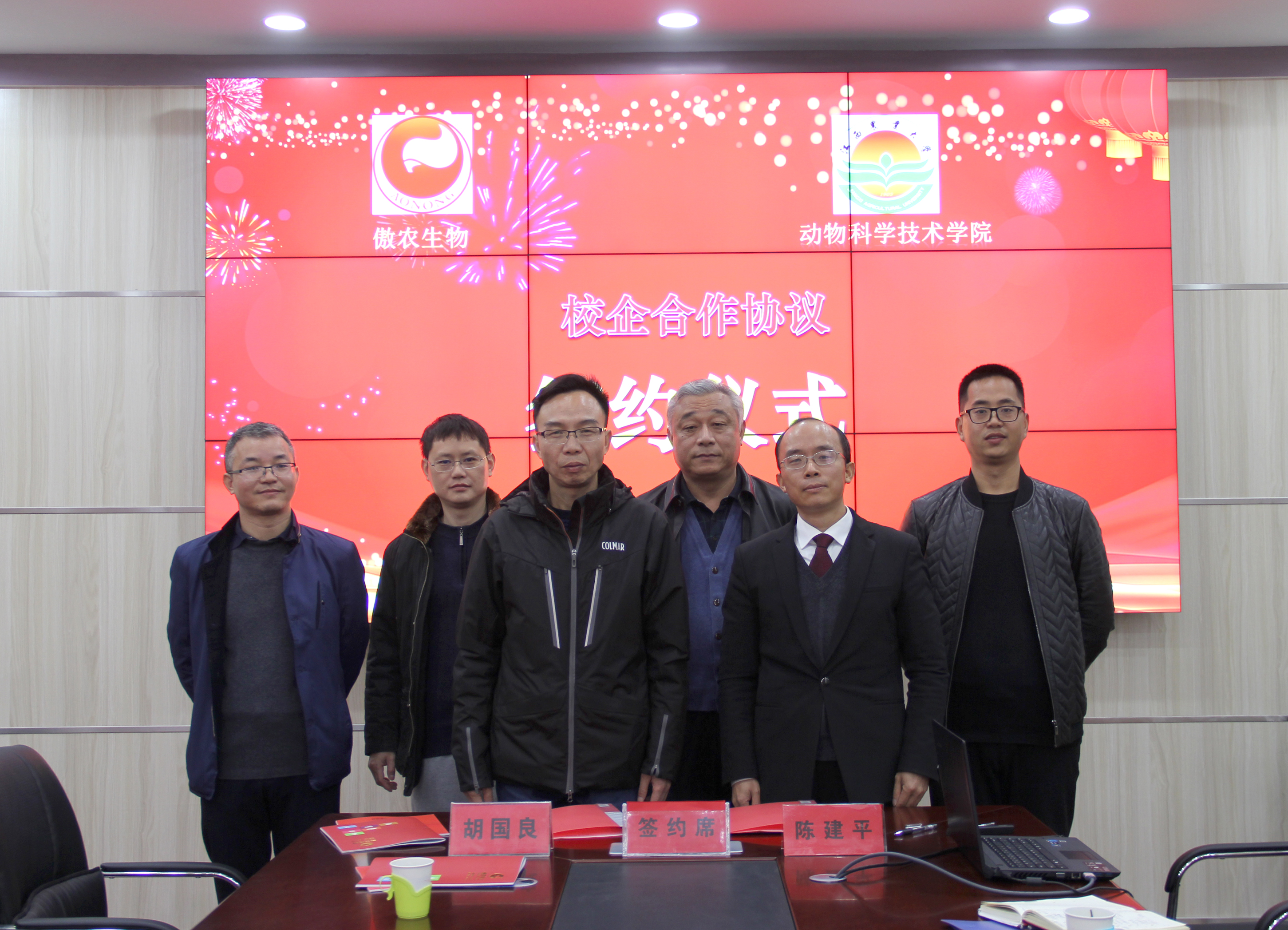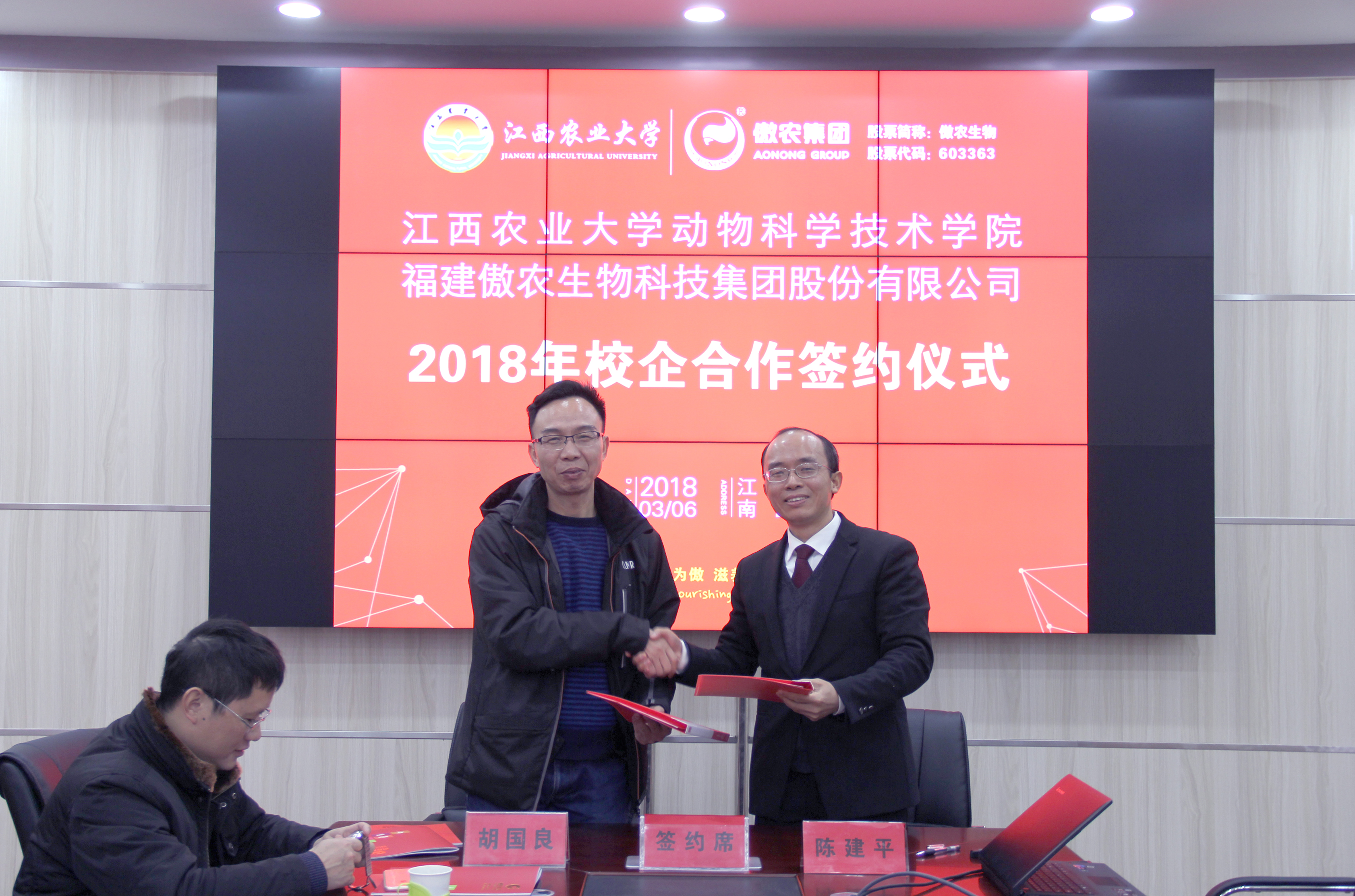 仪式上,由公司经理胡国良与福建傲农生物科技集团人力资源中心总经理陈建平共同签订了校企合作协议。