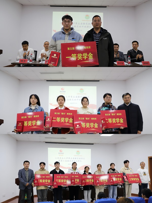 第五届傲农班学员张佳怡分享了自己在实践性课程中的成长和职业规划能力的提升。皮紫晨代表第六届傲农班学员发言,表示将以良好的精神风貌投入到学习中,做到学有所获、学有所成。校企双方还为第五届傲农班优秀成员颁发奖学金和证书。