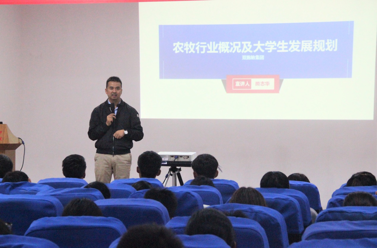 开班仪式结束后,熊志华为学员作了专题讲座,详细介绍了农牧行业发展前景,并以个人成长经历激励大家,珍惜大学时光,勤奋学习,勇于实践,尽早规划人生 ,争做新时代中华民族伟大复兴的追梦者、圆梦人。(文/戴静雯 杨硕 徐伟迪 摄影/彭静文 杨昊晨)