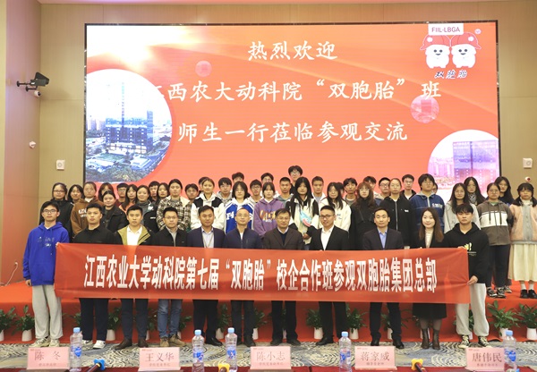 11月11日,第七届“双胞胎”校企合作班的学员们来到双胞胎集团进行参观学习。双胞胎集团招聘调配部部长石贺龙、集团养猪干部部部长唐伟民、添加剂采购部部长邹晓军、饲料与服务负责人熊杨辉出席活动并做经验分享,公司党委书记王义华、党委副书记陈小志、学工办老师陈冬和蒋家威,第七届“双胞胎班”成员及各员工代表参加,并现场推介毕业生应聘。