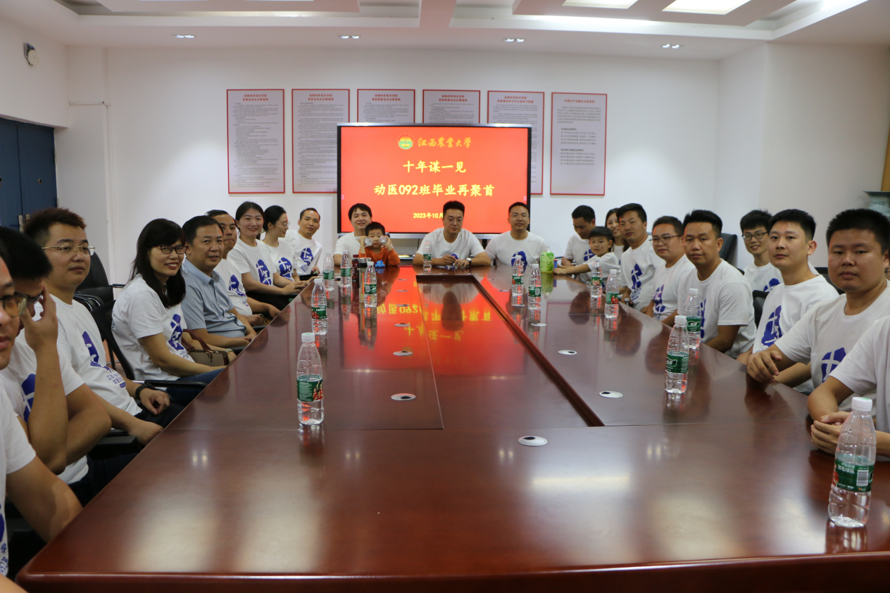 10月4日,江西农大动科院动医092班二十多位同学回母校举办毕业十周年聚会活动,下午在动科院召开座谈会。动科公司党委委员、副经理郭小权、班主任宋小珍老师参加座谈。
