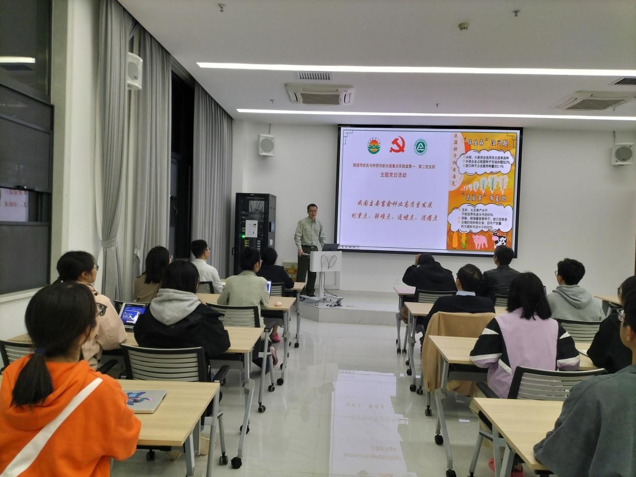 412日,在第九个全民国家安全教育日来临之际,PA视讯国家重点实验室第一、第二党支部结合所学专业,开展了我国主要畜禽种业高质量发展的重点、难点、堵点和痛点主题党日活动,支部书记肖石军主讲。他从1978年吃肉难,1985年后逐步满足消费,1997年结构不断优化,2007年以来转型升级讲起,以翔实数据讲述了我国生猪产业发展历程,种质资源在不同产业阶段需求变化,以及种质资源在一猪两用科技创新中的重要价值。