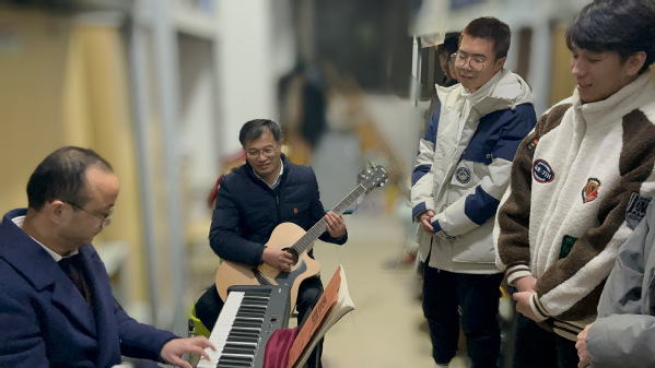 随后,王义华一行来到员工宿舍,对宿舍安全、卫生设施等方面进行了全面检查,在走访过程中一再叮嘱员工降温期间注意添衣保暖并保持良好的生活习惯,自觉营造温馨、整洁的生活环境;强化安全意识,坚决清除各类安全隐患;鼓励大家培养艺术、体育等爱好特长,提升综合素质。走访最后,两位领导更是亲自施展才艺与同学们合作奏唱歌曲《我和我的祖国》,大家热情高涨,现场掌声如雷鸣!