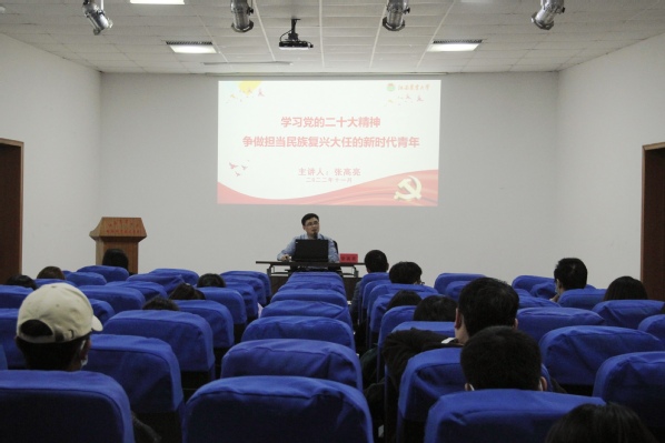 张高亮紧扣宣讲主题,联系实际,从大会盛况,过去5年的工作和新时代10年的伟大变革,马克思主义中国化时代化、中国式现代化、全面建设社会主义现代化国家的目标任务,深刻领会把握党的二十大的精神实质等方面,进行了系统宣讲和阐释。张高亮指出,学习宣传贯彻党的二十大精神,是当前和今后一个时期全校上下的首要政治任务,全体师生要在全面学习上下功夫、在全面把握上下功夫、在全面落实上下功夫,尤其注重四个“学”:一是要带着政治觉悟反复学,学出理想信念来;二是要对照系列讲话结合学,学出真情实感来;三是要立足本职岗位研究学,学出本事本领来;四是要把握目标重点学,学出职责使命来。