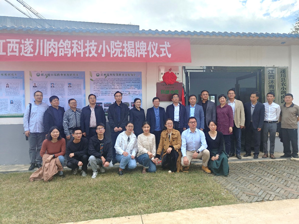 11月9日,由公司副经理郭小权牵头搭建的“江西遂川肉鸽科技小院”在江西沐青源农业发展有限公司顺利举行了揭牌仪式。省科协党组成员、副主席蔡震峰、遂川县副县长李茂军共同为遂川肉鸽科技小院揭牌,省科协院士专家服务中心副主任闵琪、省科协院士专家服务中心部长李雯、PA视讯官网科技处副处长彭剑峰等领导出席,江西省农业科公司原副经理谢金防、我院经理胡国良、副经理郭小权,相关教师及驻院研究生代表参加仪式。江西沐青源农业发展有限公司负责人刘海燕主持仪式。