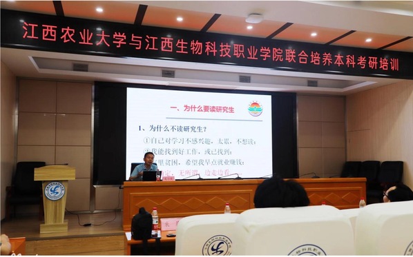 6月1日下午,经理胡国良、公司党委副书记陈小志、副经理吴小波等一行6人赴江西生物科技职业公司,开展联合培养本科考研培训工作。江西生物科技职业公司党委副书记刘顺华主持会议,江西生物科技职业公司有关职能部门负责人、动医(联培)1901班及水产(联培)1901班全体同学参加培训会。