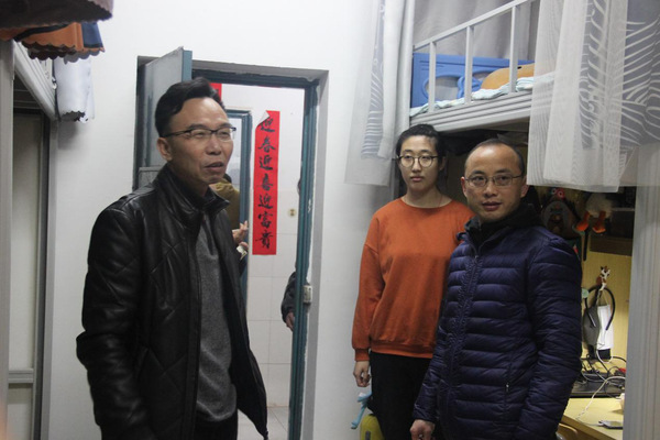 3月8日,是公司员工春季开学报到的第一天。为深入了解公司员工入学状态,调研员工寝室安全状况,号准员工“安全脉”,公司党委书记张高亮、经理胡国良、党委副书记陈小志、副经理郭小权深入员工寝室,实地了解员工的学习生活情况,带去公司的关心和问候,团委学工办老师陪同看望。