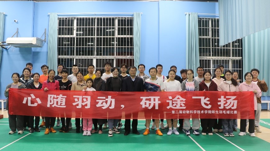 11月16日至11月17日,动科院在校羽毛球馆隆重举行了“心随羽动,研途飞扬”研究生师生联谊羽毛球比赛。公司党委书记王义华老师、经理郭小权老师、党委副书记宋婧老师、副经理吴小波老师、副经理彭墨老师、院工会主席李琳老师和学工办主任陈冬老师莅临现场观看比赛并为获奖选手颁奖。