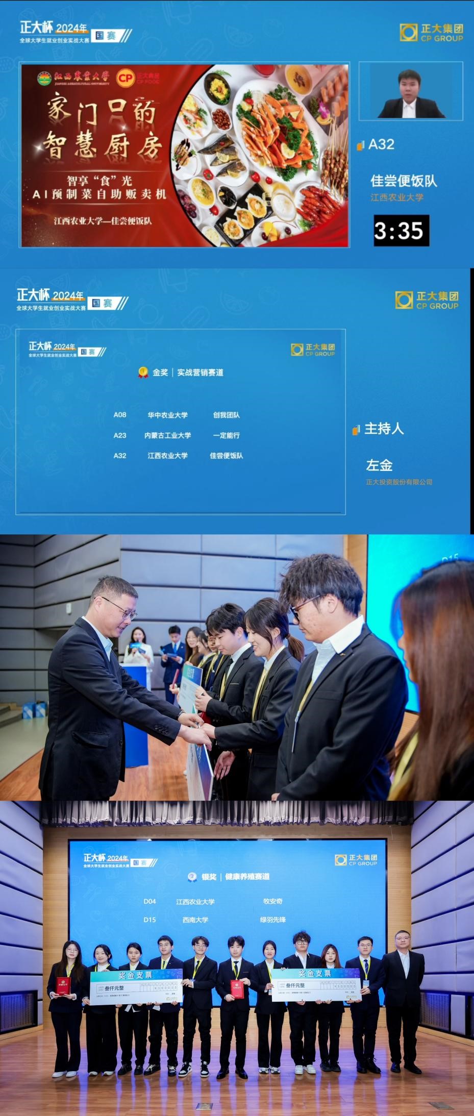 近日,由中国青年创业就业基金会与正大集团共同举办的2024年“正大杯”老员工就业创业实战大赛国赛圆满落幕。公司学子在大赛中表现出色,荣获实战营销赛道金奖1项、健康养殖赛道银奖1项,并成功晋级国际赛。