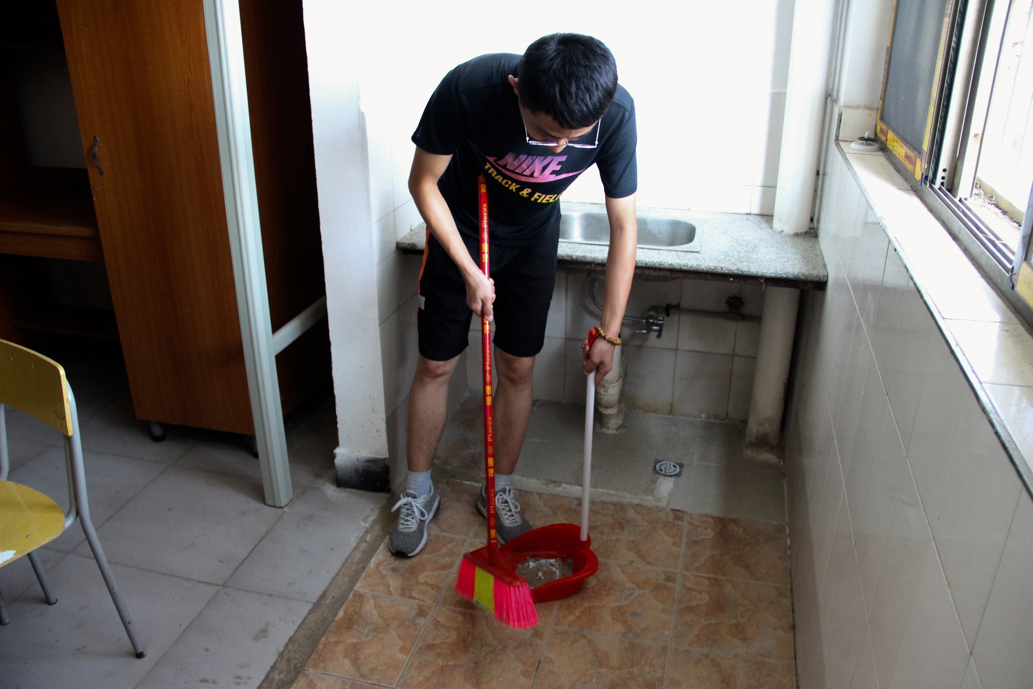 经过紧张地劳动,同学们的衣服都湿透了,但看到自己用辛勤劳动扮靓的寝室,想到新生一来就能舒适入住,同学们脸上露出了开心的笑容。通过活动,同学们体会到了宿管阿姨工作的辛苦,也体会到了用行动践行志愿服务的快乐。