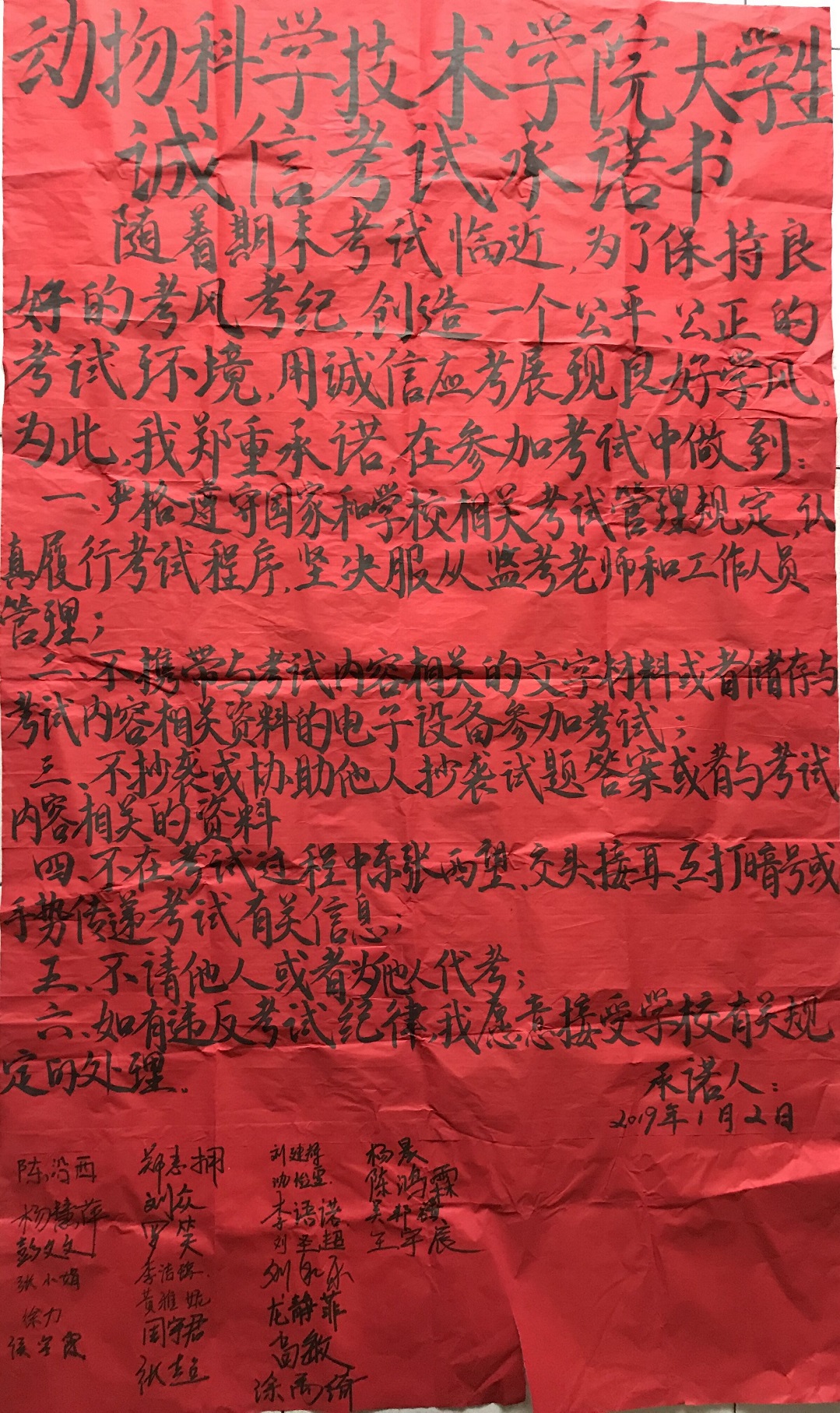 为推动学风建设,严肃考风考纪,营造诚实守信的考试环境,动科院开展了一系列诚信应考教育活动。