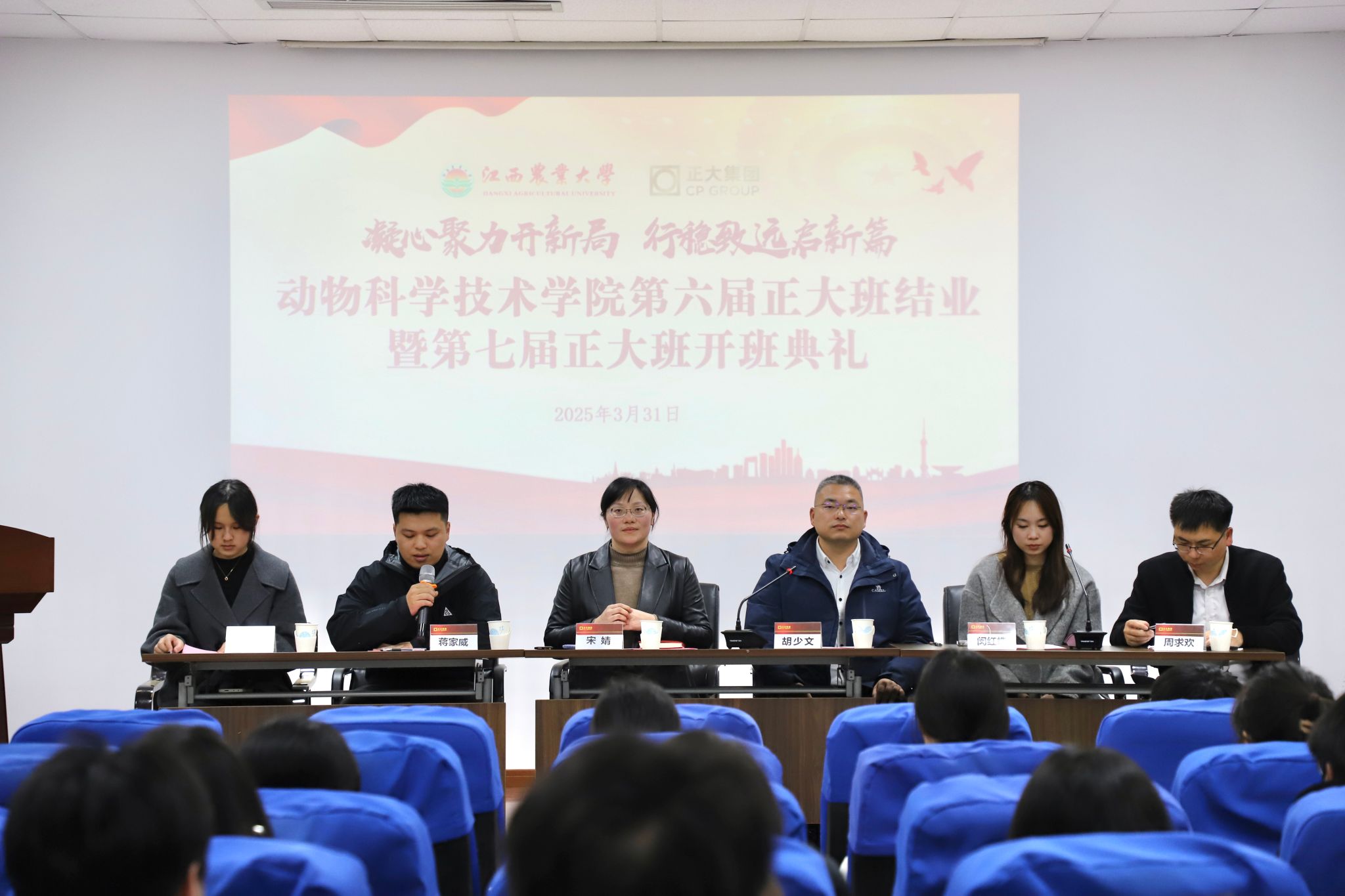 为持续深化校企合作,促进产学研深度融合,巩固拓展校企合作班的建设成果,2025年3月31日,公司第六届“正大全产业链班”结业暨第七届开班仪式在院201报告厅举行。南昌正大销售副总胡少文等企业代表,公司党委副书记宋婧、辅导员熊毅静共同出席活动。第六、七届正大班全体员工参与,班主任蒋家威主持活动。