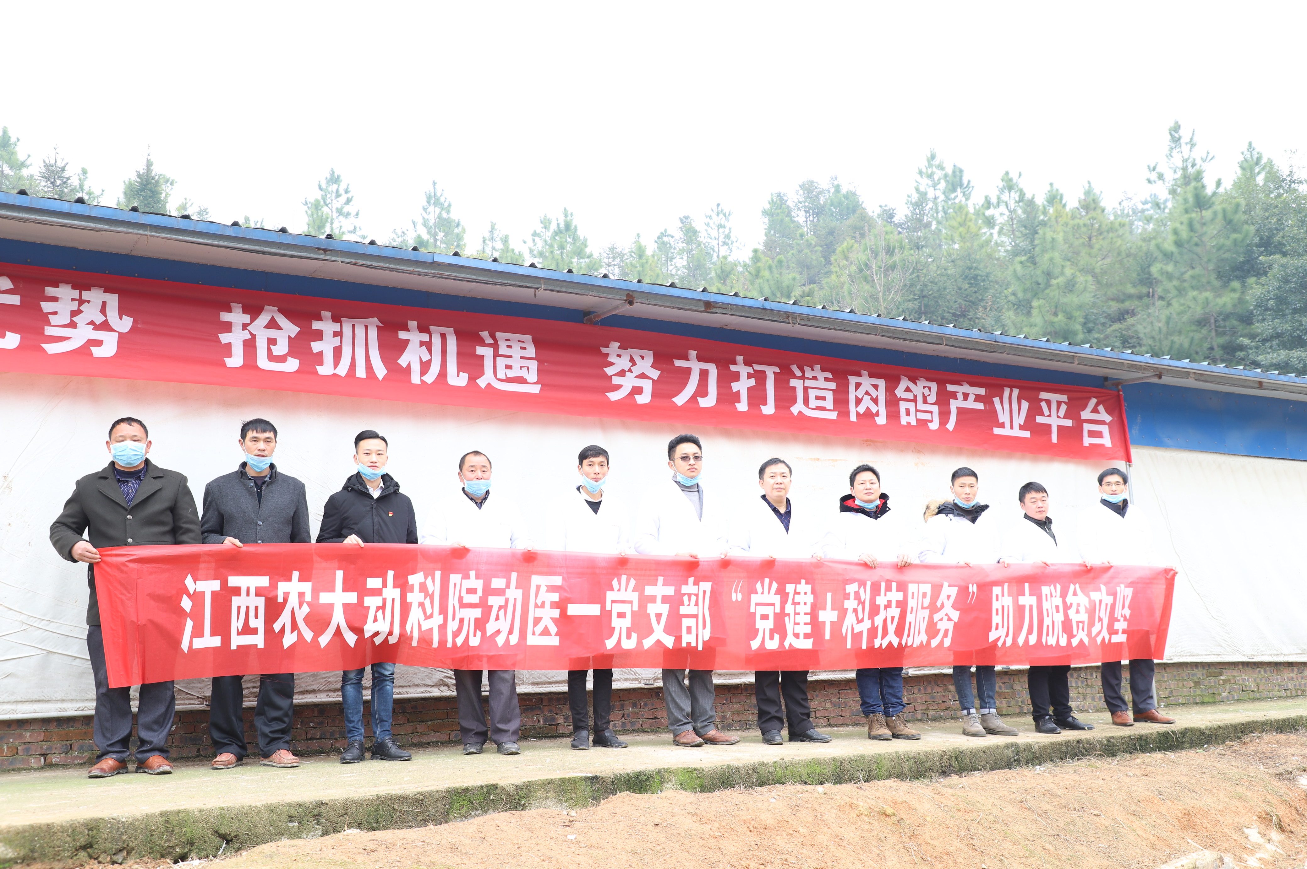 为更好地助力遂川县脱贫攻坚,壮大养鸽产业,1月22日,PA视讯官网动科院动医一支部“党建+科技服务”基地挂牌仪式暨“党建+科技服务”活动在遂川县巾石乡的沐青源生态农业有限公司成功举行。公司党委书记陆伟、副书记廖述香、动医一支部党员及江西省政协常委、民主促进会常委胡国良,遂川县畜牧兽医局党委书记、局长等参加了此次揭牌活动。