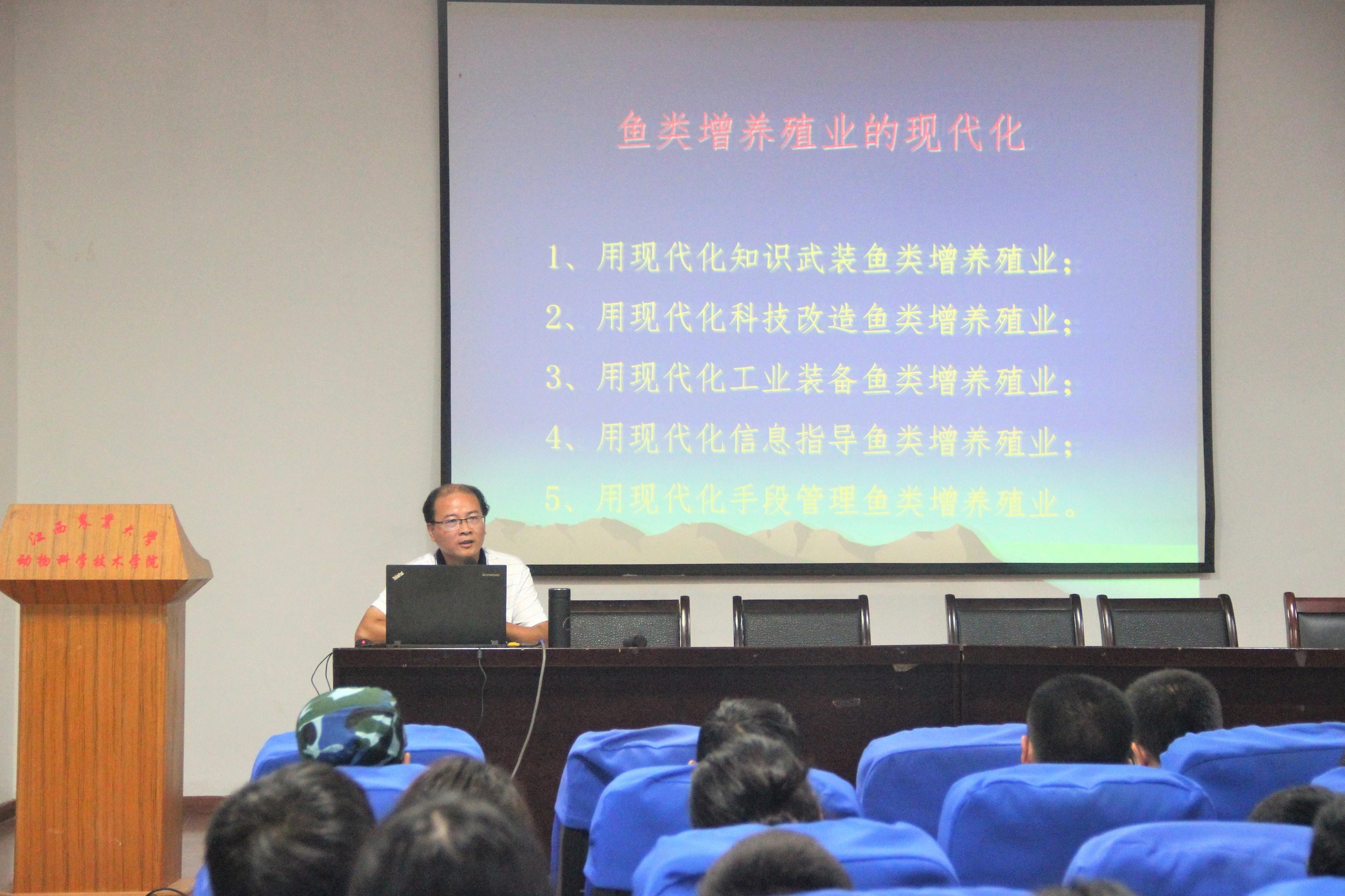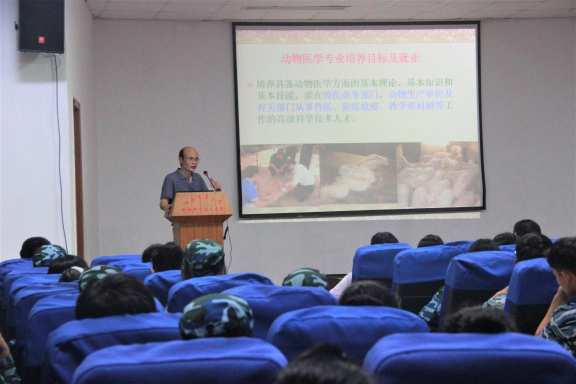经理胡国良代表公司对2018级新生表示热烈欢迎,向新生详细介绍了公司百年校史、公司八十年发展历程和教学科研、杰出员工等情况,鼓励新生要秉承优良院风,早日规划好人生目标,刻苦学习,为做社会有用之才打下坚实基础。舒邓群教授、邓舜洲教授、刘宝生副教授和熊六凤副教授分别代表动物科学、动物医学、动物药学及水产养殖学四个专业,从团队队伍、教学实践、团队建设、专业前景、兴趣小组活动等方面进行了详细介绍。