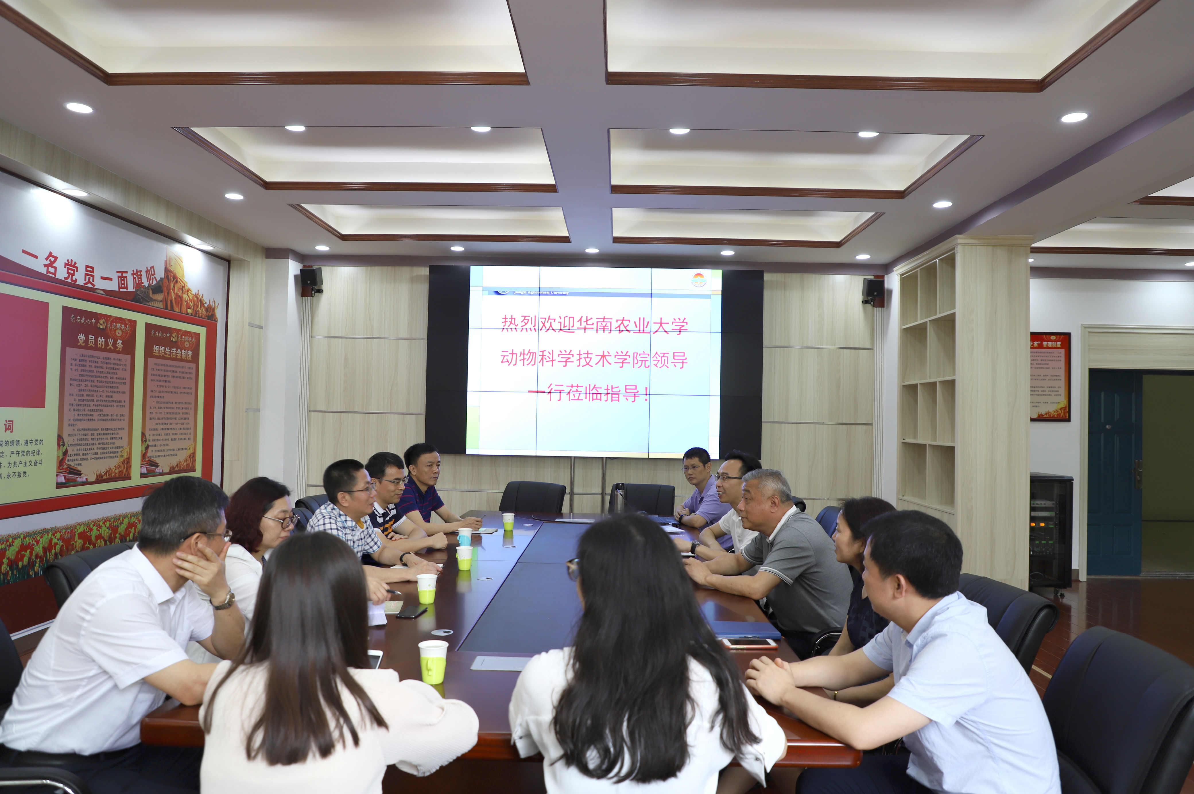 5月21日上午,华南农业大学动物科学公司党委书记伍亚泰、经理江青艳、党委副书记张海平、副经理谢青梅、动物营养与饲料研究所所长邓近平一行7人来公司动科院进行交流。动科公司党委书记陆伟、经理胡国良、党委副书记廖述香、副经理曹华斌及学工办相关人员参与会议。
