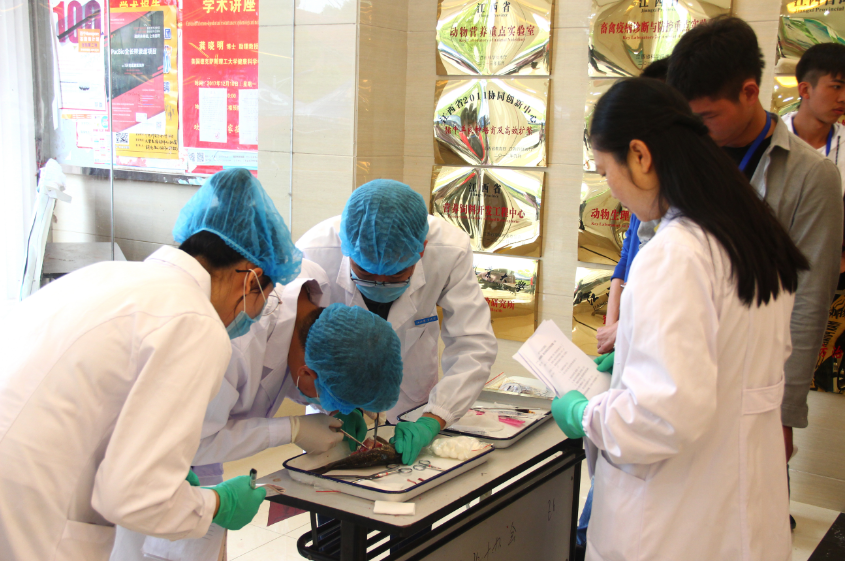本次技能大赛按照专业和年级分为专业1组、专业2组和非专业组,比赛内容主要包括禽的病理割检,鸡的精液采集、品质检测及人工授精,掺假鱼粉的鉴定等。经过激烈的比拼,动医1501班6人组、动科1501班4人组和以水产1602班3人组从26组中脱颖而出,分别摘得各项目的桂冠。(文/杨小璇 戴静雯 王若茜 唐鑫鑫 摄影/王浩)