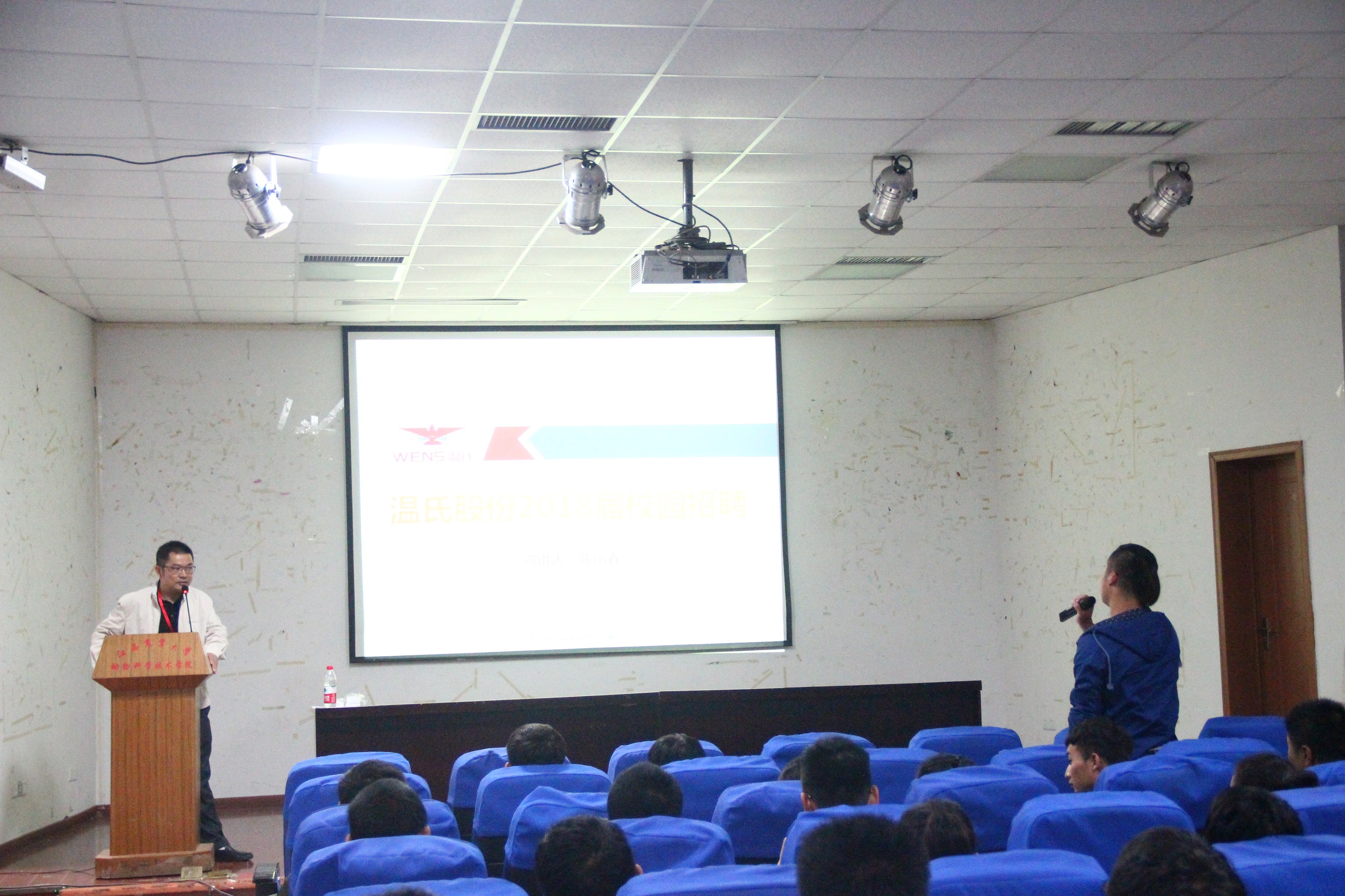10月15日,在寒风凛冽中,温氏集团来到公司开展专场招聘会。在企业的宣讲会结束后,温氏集团负责人陈先生看着收获囊中的良才,他笑着说:“多次来公司招聘,每次都能招聘到很多优秀的人才。员工的专业技能、理论基础都比较扎实。”