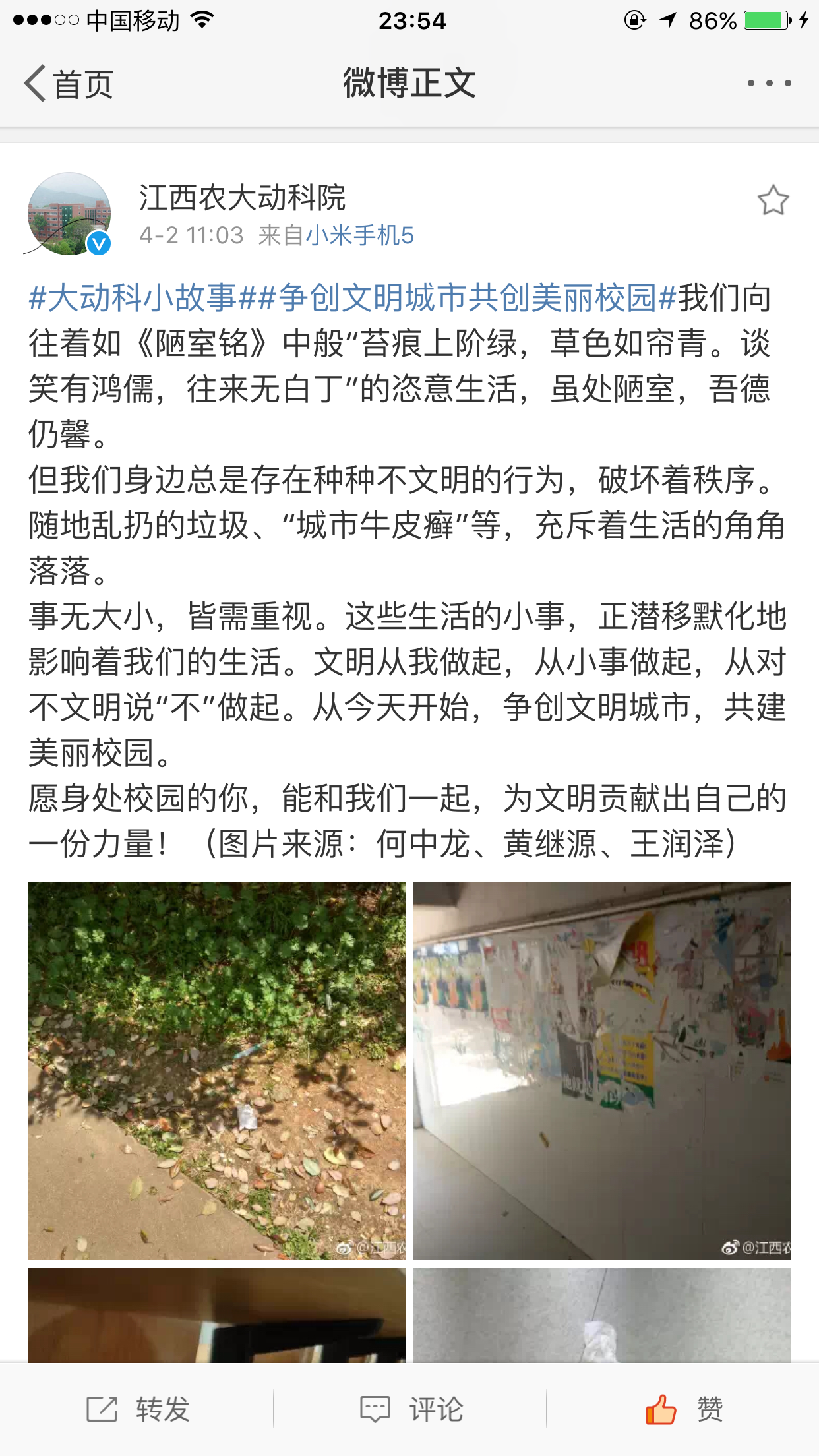 其次是浪费水电、粮食等现象。勤俭节约是中华传统美德,浪费破坏了校园内的良好气氛,带动不良风气,也是对劳动人民的不尊重。紧接着便是贴小广告。“牛皮癣”是大家深恶痛疾的,舒适的环境在很大程度上影响人的心情,而小广告恰恰对环境造成了极大的破坏。