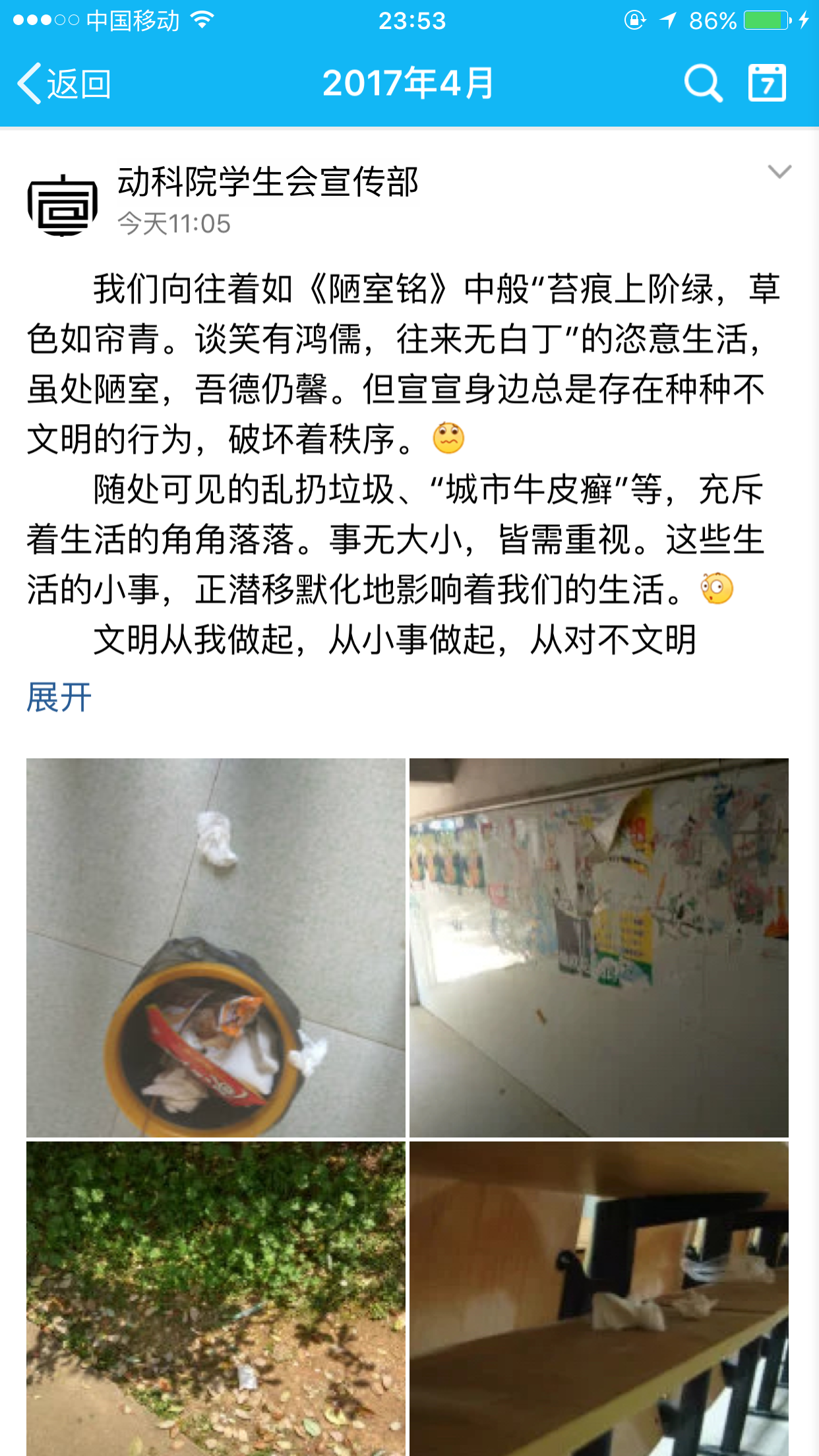 本周公司组织开展了不文明现象拍摄收集活动,发现较多同学文明意识仍不够强烈。此次活动收集的照片主要由公司员工会宣传部拍摄,现已在公司微博、微信和QQ等公众平台同步更新。
