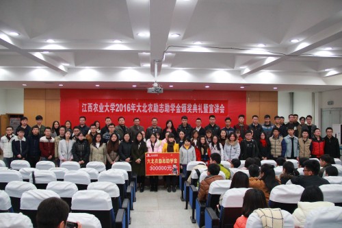11月29日晚,公司大北农励志助学金颁奖典礼暨宣讲会于校办一楼报告厅顺利召开。副董事长贺浩华,动科院副经理曹华斌,农公司党委副书记肖意风,大北农江西区负责人徐林典和邓璞江出席大会。
