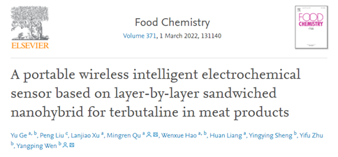 近日,公司瞿明仁教授与化学和材料公司文阳平教授在食品领域TOP期刊Food Chemistry(IF=7.514)杂志上在线发表了题为“A portable wireless intelligent electrochemical sensor based on layer-by-layer sandwiched nanohybrid for terbutaline in meat products的研究论文。瞿明仁教授和文阳平教授为本论文通讯作者,2020级动物营养与饲料科学专业博士研究生戈钰为本论文第一作者,本研究工作得到了国家自然科学基金和国家现代农业产业技术体系资助。