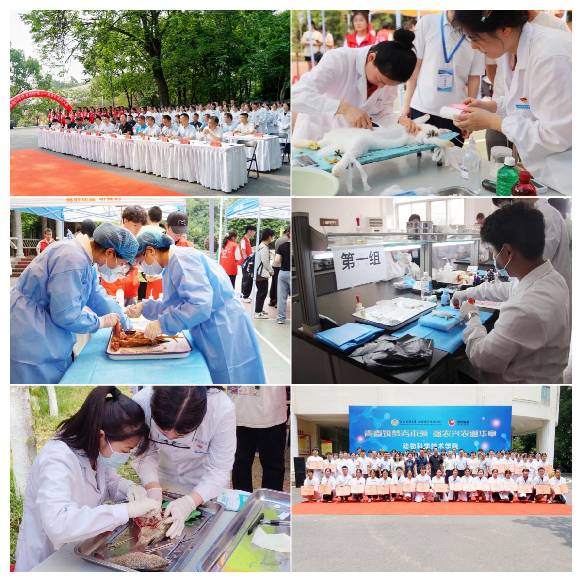 本次大赛历时一个多月,共有334名同学参加,大赛分为两个阶段:笔试初赛和操作决赛。大赛决赛按照专业和年级设置专业一组、专业二组和非专业组,比赛内容主要包括禽的病理割检,鸡的精液采集、品质检测及人工授精,掺假鱼粉的鉴定等。经过激烈的比拼,专业一组3组(许康彦、张华瑶、罗宏、卜璇、钟霈婷、旷琪)、专业二组4组(尧康、张勇红、王宇翔)、非专业组6组(余廷凤、刘汝娇、滕小云)和7组(张颖、李雯雯、黄丽洁)从24组中脱颖而出,分别摘得各项目的桂冠。