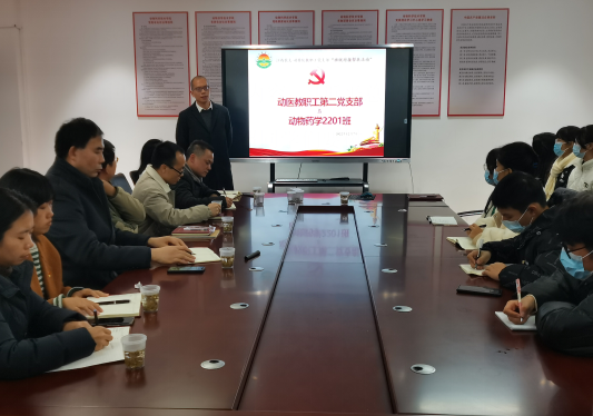 为深入贯彻落实习近平总书记对“争做四有教师”的重要指示精神,充分发挥教职工党员在教书育人当中先锋模范作用和“我为员工办实事”的实干精神,12月7日晚,动医教职工第二党支部与联系班级动药2201班级,开展了学习党的二十大精神暨“双融双育”活动,支部全体党员教师参加,党支部书记刘立恒主持会议。