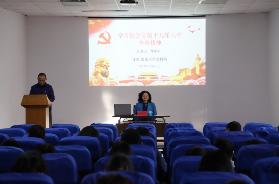 深入学习贯彻党的十九届六中全会精神,11月23日,动科院邀请马克思主义公司博士宣讲团成员胡军华副教授为师生党员宣讲党的十九届六中全会精神。