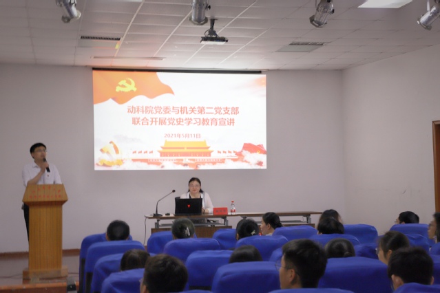 青春筑梦新时代,坚定信仰跟党走。为迎接党的百年华诞,深入学习贯彻落实习近平总书记在党史学习教育动员大会上的重要讲话精神,讲好党史故事,传承红色基因。5月11日,公司党委与机关二支部联合开展党史学习教育宣讲,邀请马克思主义公司“学党史”博士宣讲团成员胡军华老师给师生党员授课。机关二支部党员、青廉社同学和动科院一百余名师生党员参加此次活动。