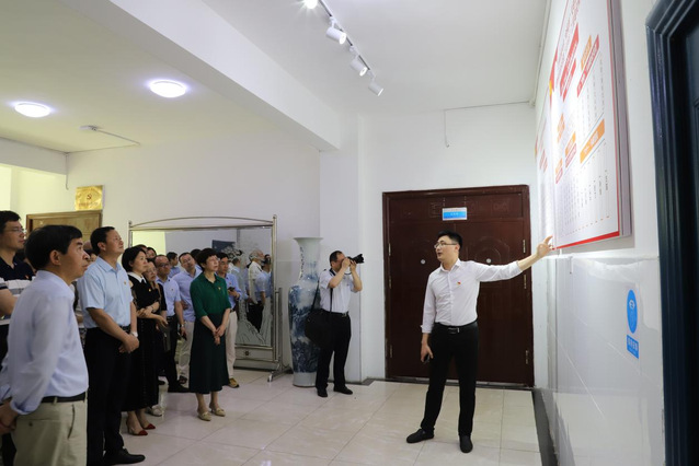 交流会前,与会人员参观了公司党建标准化党组织架构图及党员活动室,就如何进行“标准化”建设进行深入交流。
