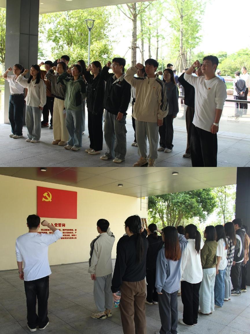 “我志愿加入中国共产党……”在展厅前,支部党员庄严宣誓,通过重温入党誓词铭记初心使命,让信仰的力量在铿锵誓言中激荡回响。大家纷纷表示,要把学习感悟内化于心,外化于行,扣好人生的“第一粒扣子”,让清廉成为青春最亮丽的底色,用实际行动践行“请党放心,强国有我”的铮铮誓言。