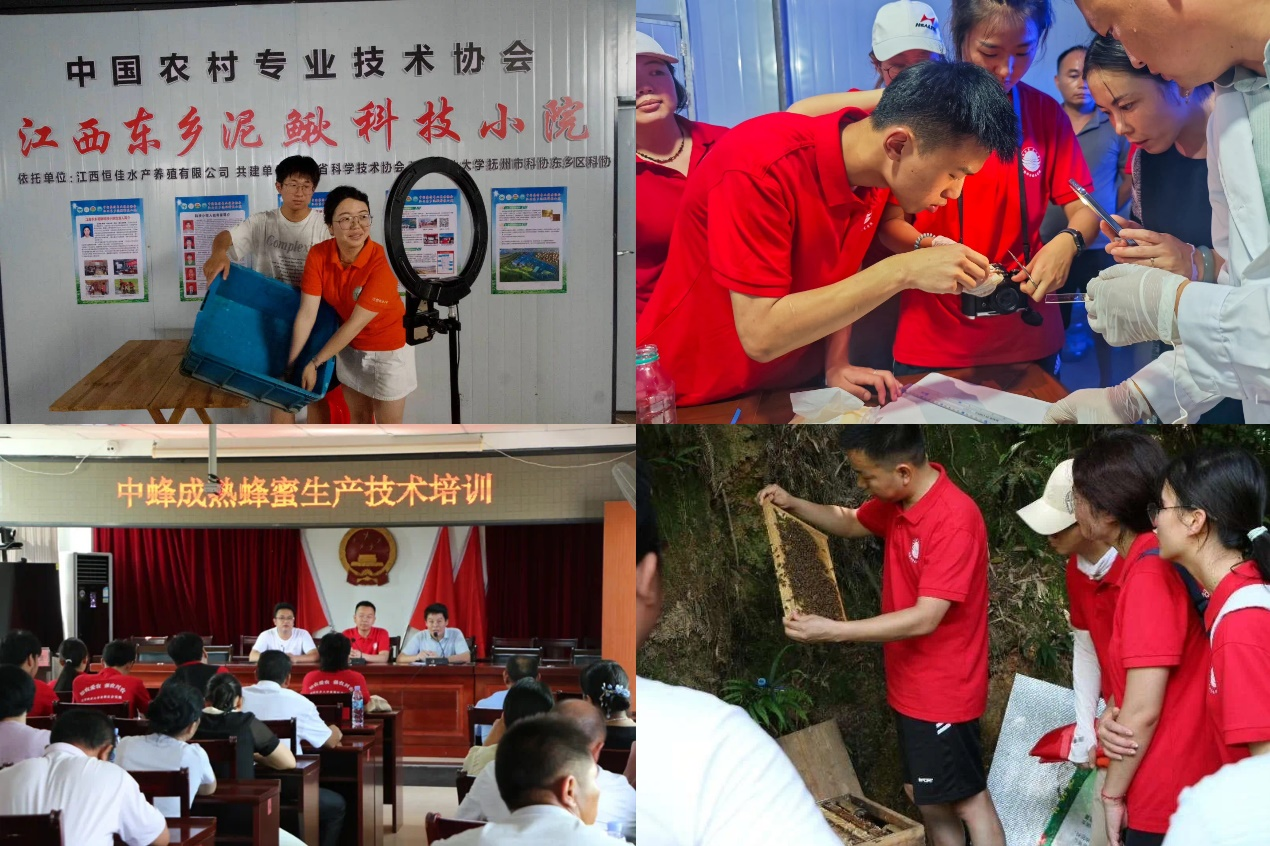 “养蛙养鳅‘抚’农促发展,科技助农惠民生”。在王自蕊、张锦华、霍欢欢三位老师的带领下,泥鳅科技小院调研队前往中国农村专业技术协会江西东乡泥鳅科技小院进行实地调研,为探索建立电商直播长效机制,努力推动地方经济发展,东乡泥鳅科技小院研究生与调研小队成员积极参与泥鳅科技小院依托单位直播带货,不仅让观众直观地看到泥鳅的质量,还通过互动为农户实时解答养殖过程中遇到的难题。科技与农业的深度融合,为乡村振兴注入了新的活力。公司育王指导技术服务队走进江西省赣州市安远县,与当地政府及蜜蜂科技小院积极开展交流合作,深入乡村进行调研和宣讲。服务队通过“三授法”为他们提供先进的技术支持,进一步增强农户们对蜜蜂养殖技术的科学理解。