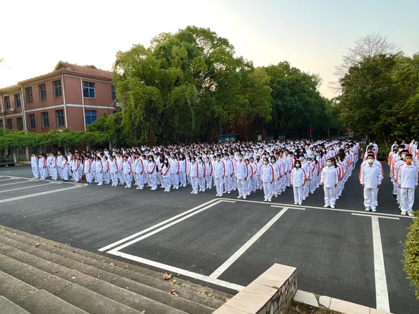 惟义楼的国旗台前,迎着晨曦灿烂的朝阳,各班同学在国旗台前整齐列队、秩序井然。升旗仪式正式开始,英姿飒爽的国旗护卫队护送着庄严鲜艳的五星红旗入场。伴随着《义勇军进行曲》的奏响,五星红旗冉冉升起、迎风飘扬。同学们向国旗行注目礼,用嘹亮的歌声表达对祖国的无限热爱与崇高敬意。
