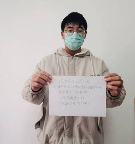 我是黄诗杨我在湖北随州,一切安好,我向大家报平安!在这场突发的疫情中,身处湖北的我们理性面对,做好自身防护:戴口罩,勤洗手,多通风,听从钟南山院士的指挥,不出门,不聚集,不给一线人员增加负担。在居家防疫的这段时间,我作为员工也在积极学习,预习本学期课程,做好线上学习的准备。公司公司也对我的情况密切关注,老师也经常致电询问我的身体及心理状况,我也积极配合公司工作。我相信在所有人的共同努力下,我们一定可以打赢这场没有硝烟的战争!