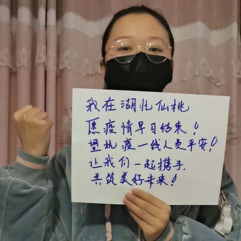 我是雷雨欣,我在湖北仙桃一切安好,我向大家报平安!这场没有硝烟的战疫轰然打响,每一个平凡的你我用宅家的方式砌成防御的坚墙!日脱始于最黑暗的夜,让我们宅在家一起守候春天!期待武汉的樱花灿烂地盛开,黄鹤楼下的汉江澄澈变为另一番模样!