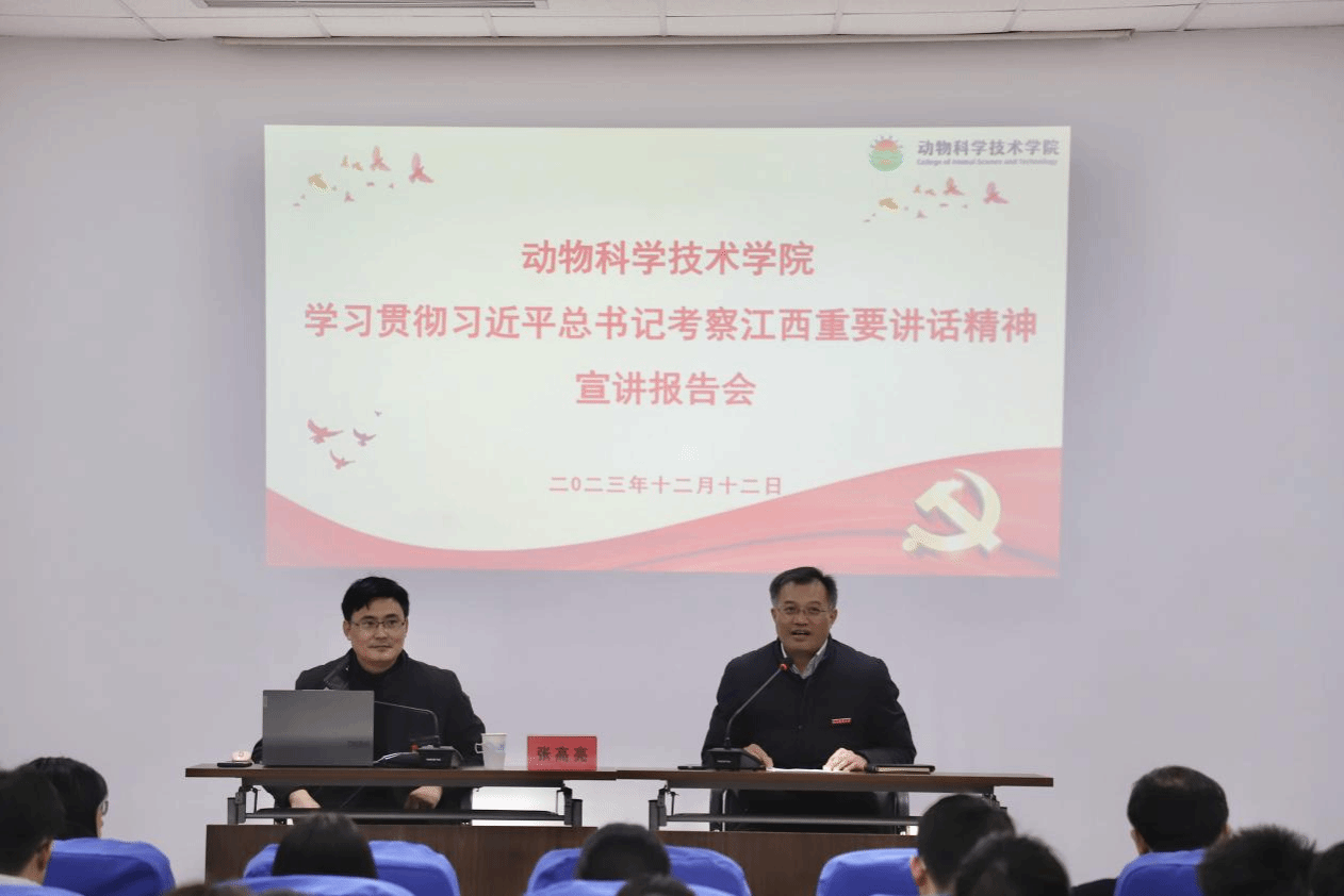 报告会上,张高亮以习近平总书记三次视察江西为切入点,从三个方面深入阐述了习近平总书记考察江西重要讲话精神的丰富内涵和精髓要义。他结合动科院工作实际,教育引导全院师生要深刻领会精神,汇聚奋进力量,以立德树人为根本,以强农兴农为己任,切实把习近平总书记考察江西重要讲话精神落实到行动上、贯彻到工作中。